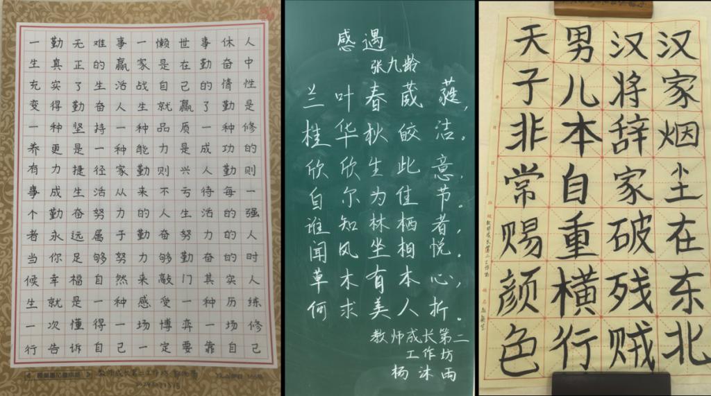 在评审过程中,评委们严格遵循比赛规则,秉持公平、公正的核心原则,对所有参赛作品展开了全面而细致的评审,最终郭雨蕾、赵颖芝、杨沐雨同学分获钢笔字组、毛笔字组、粉笔字组一等奖,沈雅晴、杨顺昊、马星等同学获得分项二等奖,张苗苗、刘甜甜、曹若涵等同学获得分项三等奖。