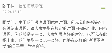 2020年2月24日是信阳师范学院网上教学的第一天。当日上午,365英国上市全体师生同上了学校举办的“网上教学第一课”,当日下午,我院专业课授课老师顺利开展了“网上教学第一课”。