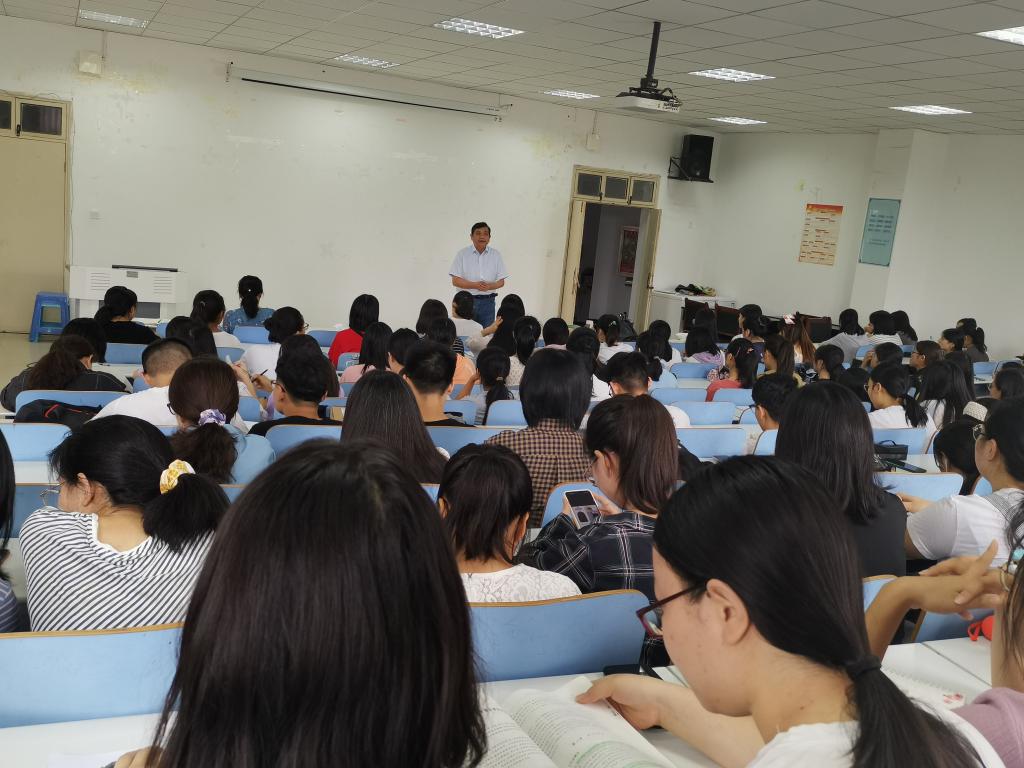 最后,胡月老师针对以上两位教师的讲话做了总结,并对各位学生的补考、重修等教学疑难进行了解答,完美的结束了这场岗前实习动员大会。