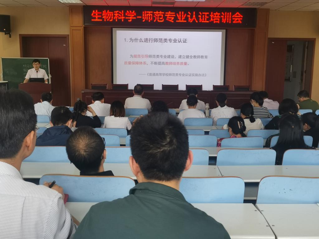 为提高我院生物科学专业教师对师范专业认证工作理念的认识,切实有效推进师范类专业认证工作。4月26日,我院于生物楼414会议室召开生物科学师范类专业认证培训会。本次会议由365英国上市副院长荆胜利主讲,全体领导班子成员和生物科学专业全体教师参加。
