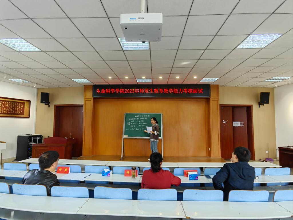 4月27日,我院在生物楼104、106、414完成了2023届生物科学专业师范生教育教学能力考核面试工作。本次面试我院邀请市教研员、学科教学论教师、中学一线教师、学科专业教师担任评委。