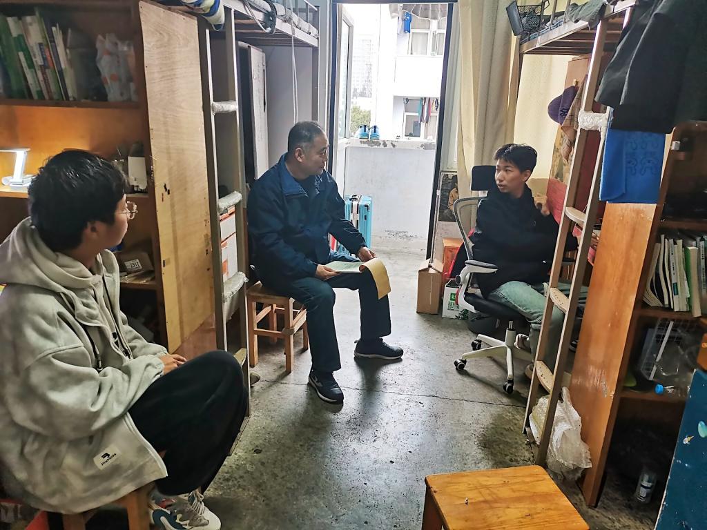 老师们深入每一间宿舍,询问学生的宿舍基础设施是否存在安全隐患,严格排查是否存在违规使用大功率电器的现象,是否有电线私拉乱接的危险行为,以确保宿舍用电安全。关注宿舍整洁状况,查看卫生情况,李刚表示一个整洁的宿舍环境不仅能给人带来舒适的居住体验,更有利于学生们保持良好的身心状态,鼓励同学们合理利用宿舍空间,打造一个安静有序的学习环境,为自主学习创造有利条件。李刚与同学面对面进行交流,了解舍友之间是否相处融洽,是否存在矛盾纠纷,并及时给予调解建议,倡导同学们相互理解、相互包容、相互帮助。李刚指出营造积极向上,健康有益的宿舍氛围也很重要,鼓励同学们保持良好的言行举止,相互尊重,维护宿舍的和谐氛围,共同营造一个温暖的宿舍大家庭。同时,老师们宣传防诈骗知识,提醒同学们警惕各种网络诈骗、电信诈骗等,不要轻信陌生人的信息,避免财产损失,保障自身的财产安全和人身安全。在整个检查过程中,老师们的态度认真负责,每一个细节都详细记录针对发现的问题,及时与学生沟通,并提出切实可行的整改建议。同学们积极配合检查工作,认真听取意见。