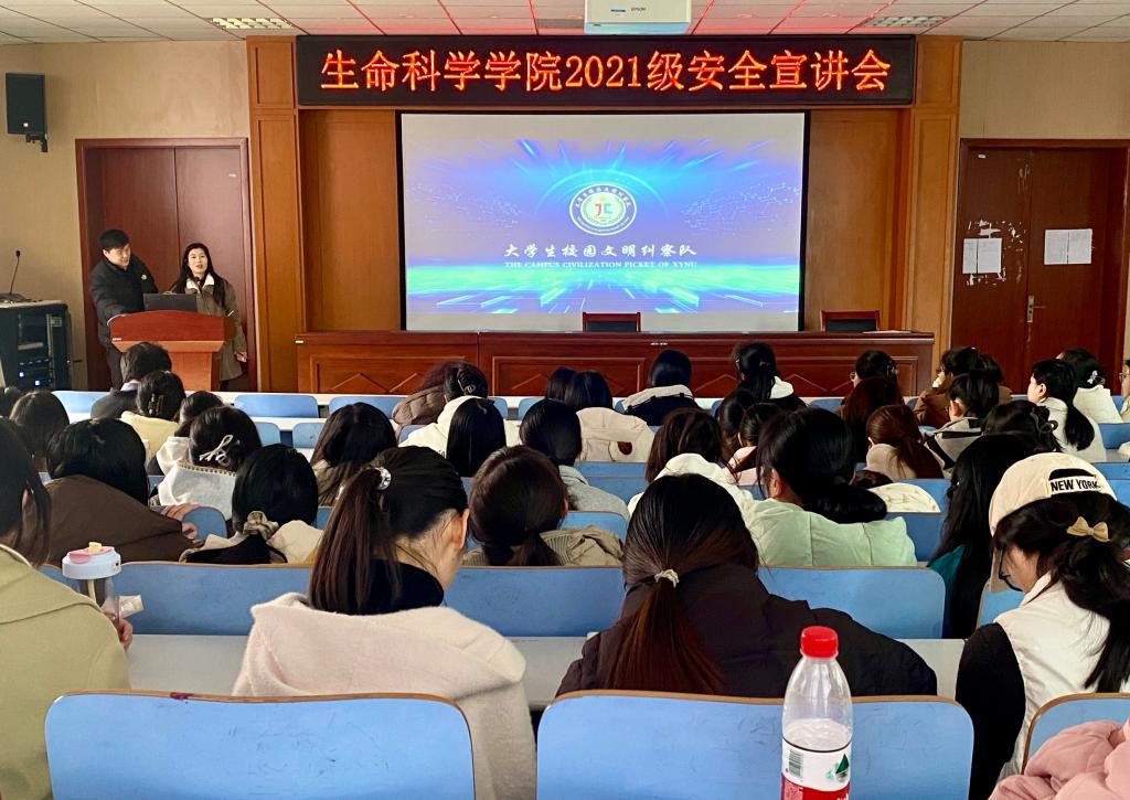 为铸牢校园安全防线,提升学生安全素养,3 月 10 日下午,由学校保卫处与365英国上市联合主办的 2021 级安全宣讲会在生科楼 414 会议室召开。学校保卫处宣讲员;我院2021级专职辅导员张博、张阳阳,兼职辅导员盛梦茹参加会议。