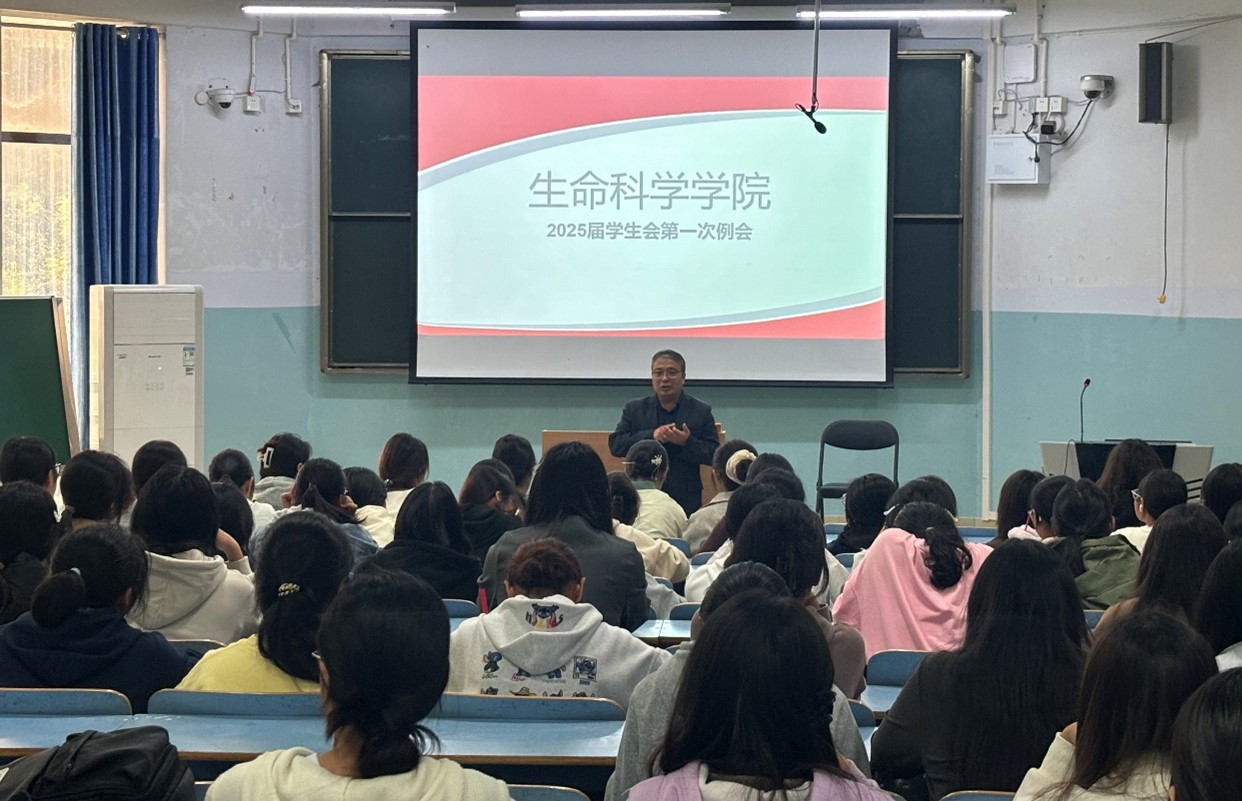 为充分发挥学生会桥梁纽带作用,贯彻落实校学生会工作精神,鼓励成员通过实干提高综合素质,做好近期相关工作。10月10日中午,我院于教九楼305教室召开2025届学生会第一次全体例会,我院党委副书记荣宪举、学生会全体成员参加,会议由学生会主席袁林健主持。