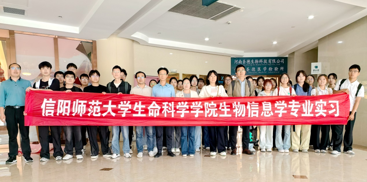 2025年4月27日至30日,在学院实习实训中心的精心组织安排下,副院长彭波、生物信息学系主任邢锋、本科教学秘书靳建锋和专业指导教师田华教授、毛光志博士和李岑岑博士,带领2023级生物信息学专业学生赴河南圣德生物科技有限公司和信阳圣德医学检验所开展专业实习,同时开展访企拓岗行动。