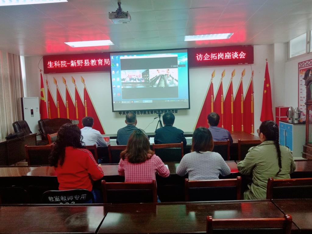 为贯彻落实《信阳师范学院校领导访企拓岗就业活动实施方案》要求,积极为学生搭建就业平台,满足社会需求, 4月28日上午,生科院邀请南阳市新野县教体局进行了线上访企拓岗促就业座谈会,新野县教育局主要领导、生科院领导班子成员、全体辅导员参加了座谈会,会议由党委书记李刚主持。