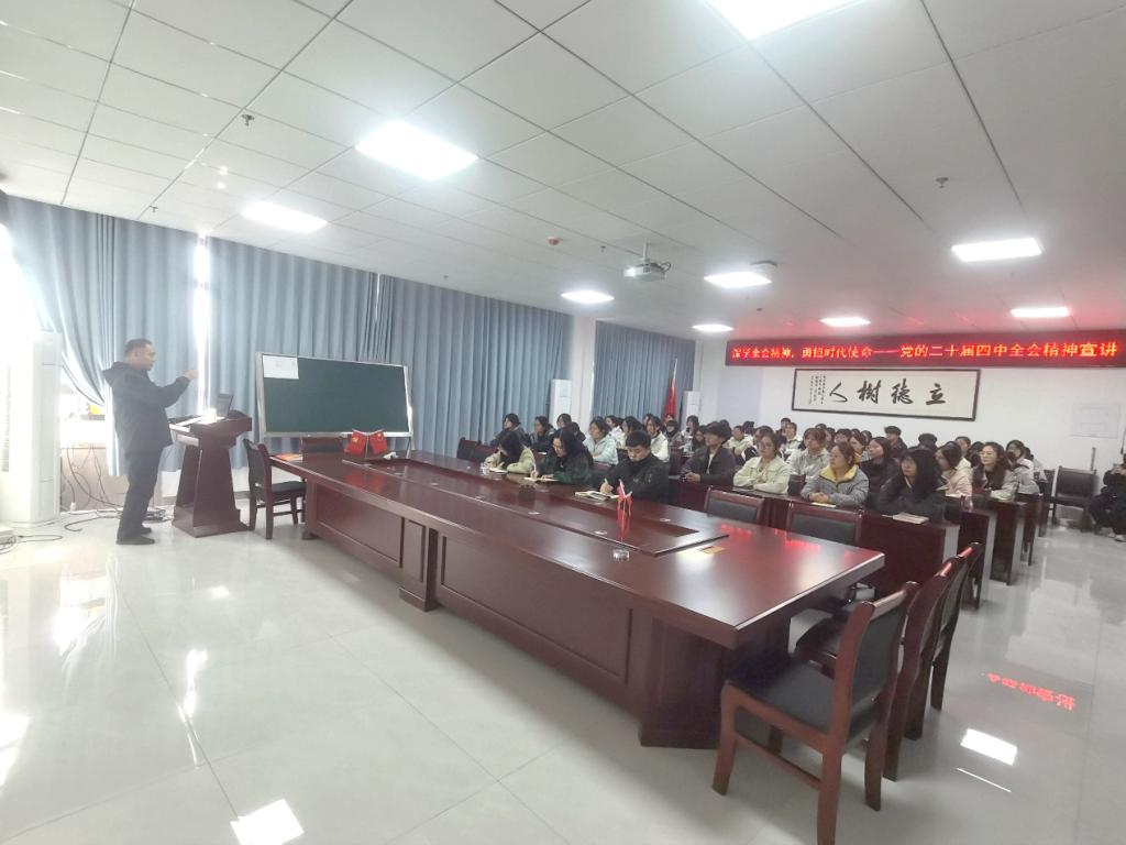 为深入学习贯彻党的二十届四中全会精神,切实把思想和行动统一到党中央决策部署上来,11月27日上午,学院党委书记李刚作学习贯彻党的二十届四中全会精神专题宣讲报告。学院全体辅导员、学生会骨干、学生党员和入党积极分子参加。党委副书记荣宪举主持报告会。