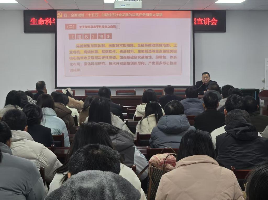 宣讲会上,何晓坚作了《学习贯彻党的二十届四中全会精神》的专题宣讲,他从全会基本情况、“十四五”时期我国发展取得的重大成就、准确把握“十五五”时期在基本实现社会主义现代化进程中的重要地位、深刻领会“十五五”时期经济社会发展的指导方针和主要目标、全面理解“十五五”时期经济社会发展的战略任务和重大举措、坚持和加强党的全面领导等方面对党的二十届四中全会精神进行了详细讲解,并详细阐述了教育、科技、人才在中国式现代化建设中的基础性、战略性支撑作用。他指出,我们要主动将自身发展置于国家战略和区域发展大局中谋划,要紧密对接国家在生物安全、粮食安全、人民生命健康、生态文明建设等领域的重大需求,充分发挥学院在植物学、生态学、生物化学等方向的研究特色,特别是要围绕文化反哺科研,在激发创新思维、打破思维定式等方面持续深耕,加强基础研究与原始创新,推动科技创新与产业创新深度融合,力争产出更多标志性成果,培养更多高素质人才。
