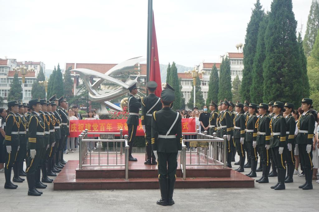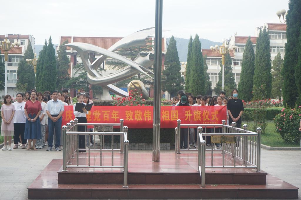 为庆祝建党百年、致敬伟大祖国。6月21日早晨,我院于行政楼前举行升旗仪式。我院党委副书记杨霁虹、团委书记熊蕾与武装干事朱晓雯出席现场,20级全体学子共同参与此次升旗仪式。