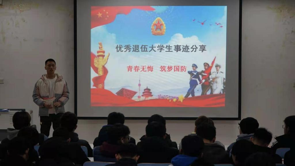 班会伊始,朱晓雯提出国防教育的重要性,她指出,作为一名大学生,理应重视国防、积极投身于国防建设之中。朱晓雯从学籍保留、专业选择、成绩评定、保研和奖励政策等方面对大学生征兵入伍作了详细的介绍。随后,2018级优秀退伍学子王贺祥分享了他的入伍经历,让在场学子对军营生活有了更多的了解。他言道,当兵不后悔,不当兵后悔一辈子,入伍带给他不一样的成长和收获。在朱晓雯号召在场学子积极入伍后,班会圆满结束。