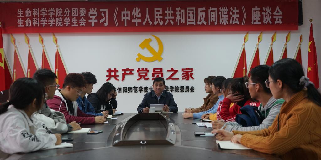 按照统一安排,生科院分团委、学生会开展深入学习《中华人民共和国反间谍法》宣传教育活动,11月3日,在生物楼412会议室召开学习《中华人民共和国反间谍法》座谈会。我院党委副书记杨霁虹讲话,分团委书记熊蕾主持,全体学生会主要干部和部分中共党员参加座谈会。