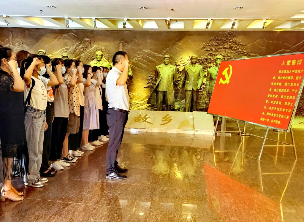 6月5日,学院党委在信阳市鄂豫皖革命纪念馆举行2021年上半年新党员入党宣誓仪式。学院党委书记李向阳、副书记杨霁虹,专职组织员孙太红,学生党支部书记杨娟娟、熊蕾、李敏,以及新发展的44名预备党员参加了宣誓仪式。会议由孙太红主持。