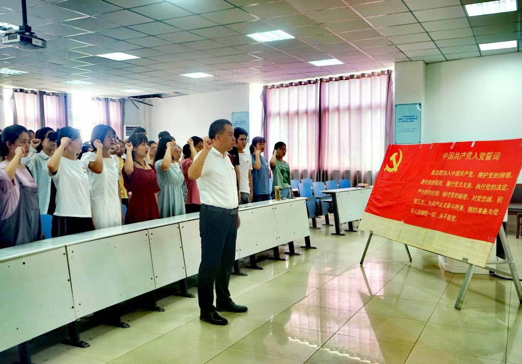 在中国共产党成立100周年之际,6月9日,学院党委在414教室组织全体学生党员举行了重温入党誓词仪式,学生党支部书记杨娟娟主持仪式。